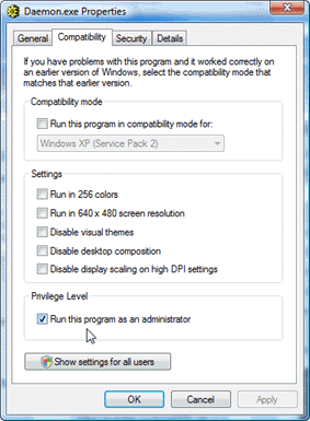 by default). Select Daemon.exe, right click, and choose Properties. On the