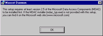 Mascot Daemon requires Microsoft Data Access Components (MDAC) version