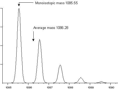molecular weight of 1086.28 and a monoisotopic weight of 1085.55.