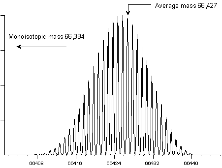 mass for BSA, and it is far from routine to measure a monoisotopic