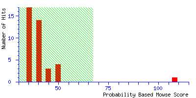 tail of the distribution of scores for all the entries in the sequence database. In this case,